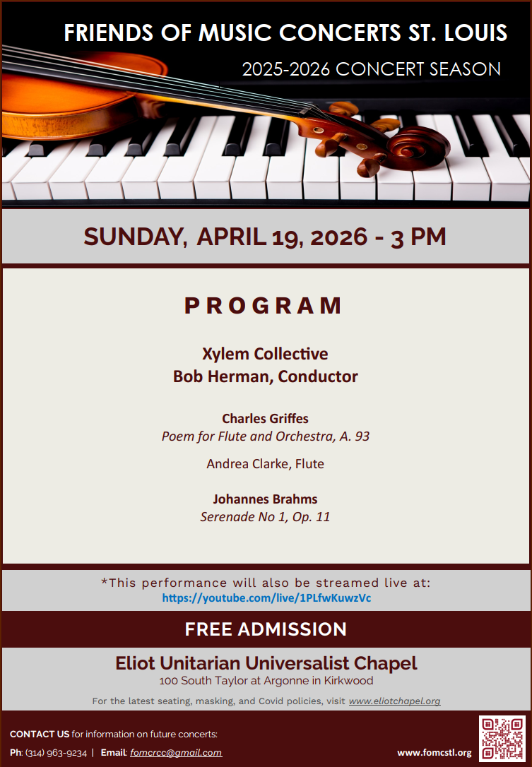 Friends of Music Concerts are co-sponsored by Eliot Unitarian Chapel